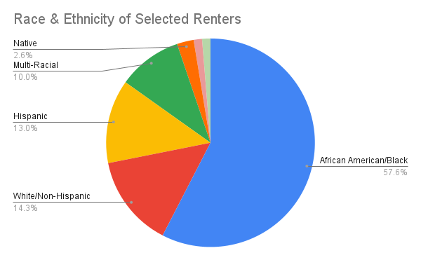 3. A majority of renters who receive funding are Black women. In a housing system that seems stacked against low-income and BIPOC renters, and especially Black mothers, the Renter Support Fund awards 86% of funding to people of color and a majority of funding to Black women. Additionally, two in five renters who receive funding have experienced homelessness, one in four identifies as having a disability, and one in five identifies as Trans or LGBTQIA+.